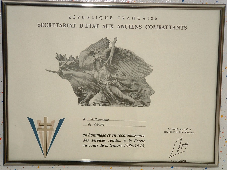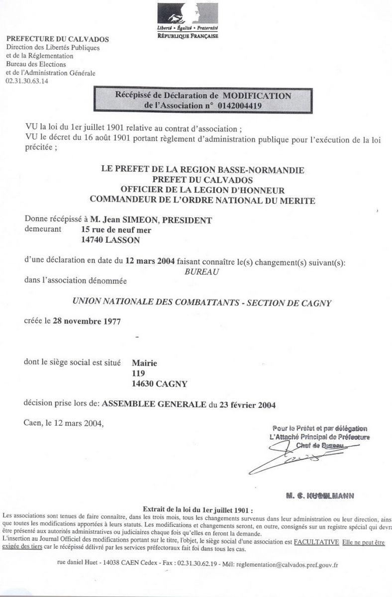 La section des anciens combattants de Cagny a été déclarée à la préfecture du calvados le 26 Novembre 1977, elle porte le numéro 4419.