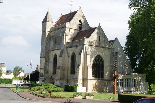 En 1995, le mur du chevet a été doublé de plaquettes récupérées sur un mur ruiné du terrain de foot-ball qui datait du début du XIXe siècle. Il accueille une petite statue en bois de St-Germain ainsi que les têtes des statues de saint-Germain et sainte-Radegonde qui encadraient l'autel de l'ancienne église. En 2009, le major Tony Brady (Irish Guards), vétéran qui avait participé à l'opération Goodwood, a fait don à l'église d'une statue de saintt-Patrick, patron des Irlandais.